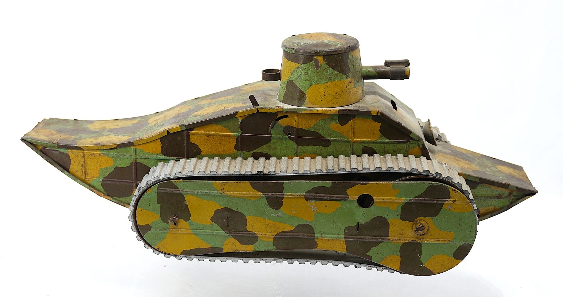 Made of painted camouflage sheet metal, with rubber tracks.