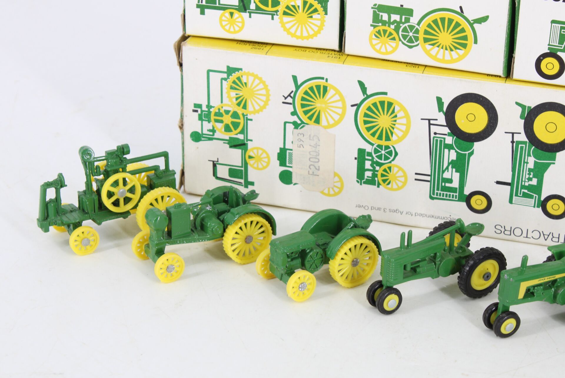 Huit tracteurs miniatures John Deere